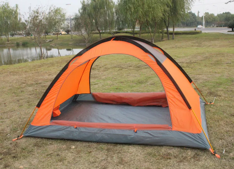 This tent is constructed from 600D Oxford fabric with reflective mylar material. Its structure is designed to fulfill various camping needs, featuring one bedroom and an aluminum pole. The trekking tent is made of double layers, providing sturdy protection and ample room for two users. With an outside tent waterproof index of more than 3000mm and a bottom waterproof index of more than 3000mm, this four-season tent is highly waterproof. The outer tent is coated with PU3500MM 210T polyester and waterproof stickers, while the inner tent is made of breathable 210T polyester and B3 floor, featuring a bottom waterproof coating of PU4000MM and Oxford debt bottom waterproof stickers. The tent also features extendable louvers for good ventilation and additional space for equipment, as well as a 60CM extension on each surface for better wind performance. The fashionable design of the inner tent is complemented by a tent lights hook on the top and a snow