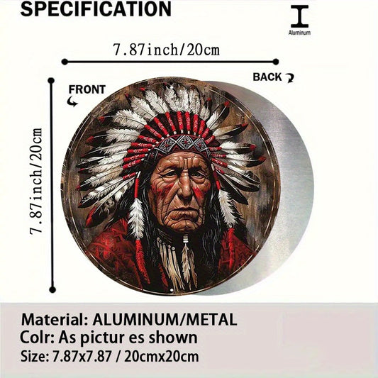 Vintage Native American Chief Metal Sign - 8-Inch Round Rustic Wall Art
