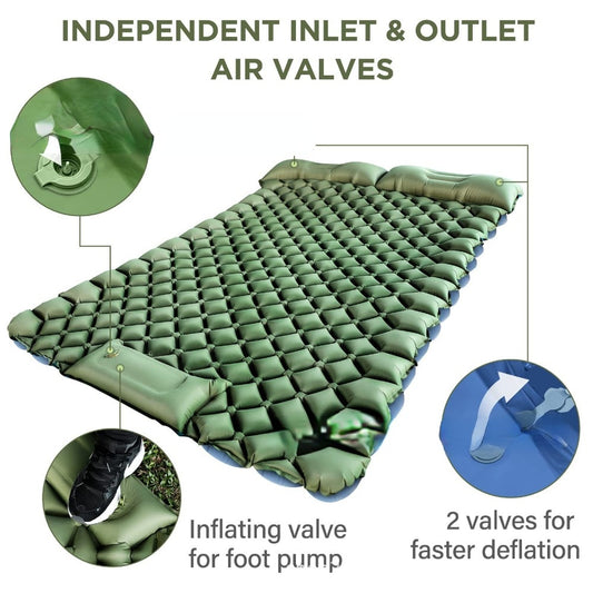Portable Camping Mat Double Sleeping Pad for Self Inflating with Pillow Pump Inflatable Sleeping Mat for Hiking Traveling Tent
