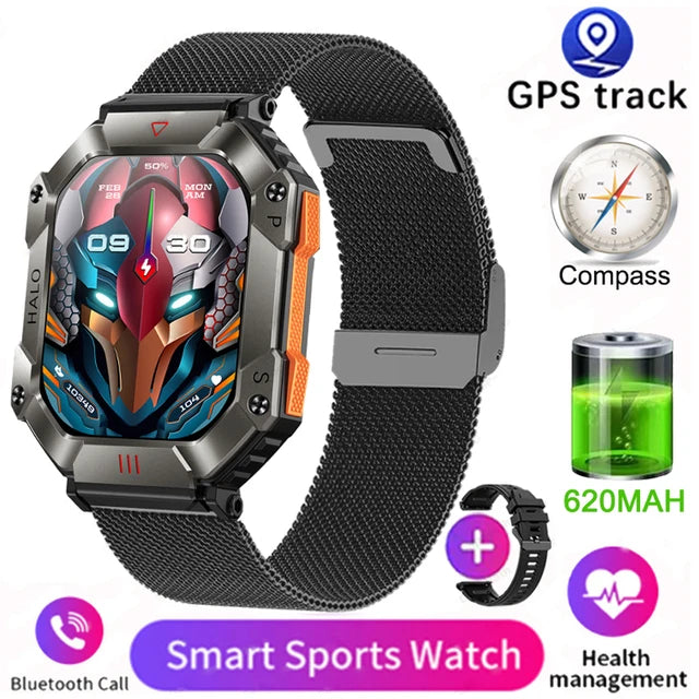 New Men's Smart Watch Compass Weather AI Voice Assistant Sport Mode Outdoor Adventure Waterproof Bluetooth Call Smart Watch